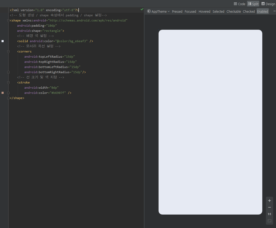 [Android Studio] 둥근 도형 만들기 ( Shape Drawable ) 본문
